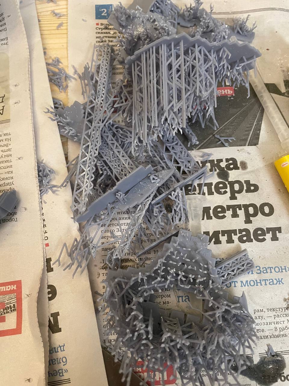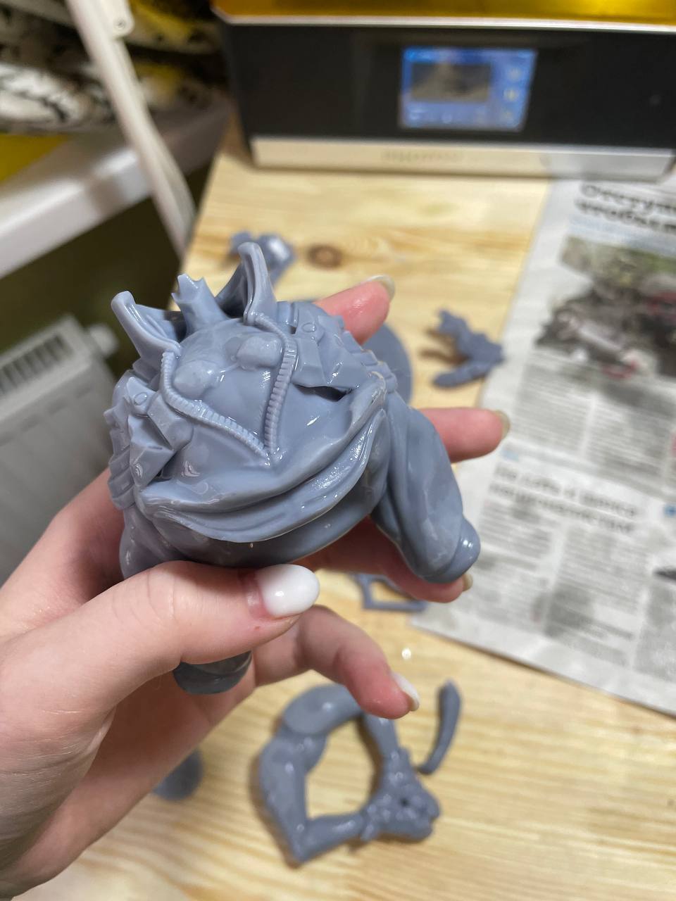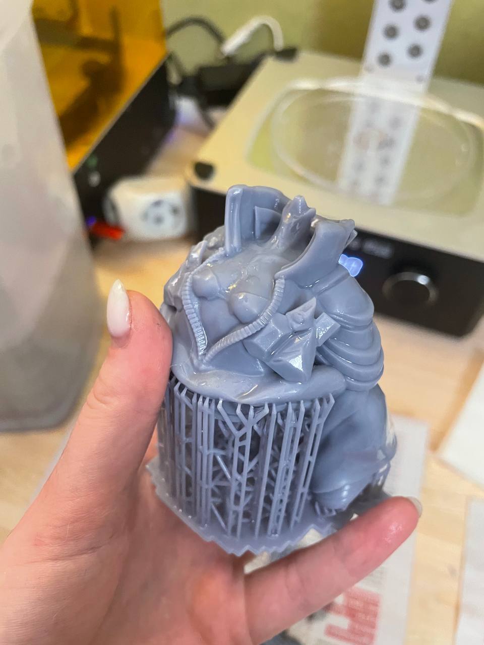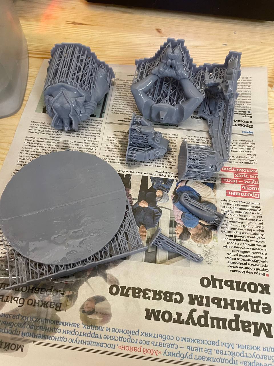Выше можно увидеть модели после снятия с принтера и мойки в спирту. Ждем высыхания моделек.