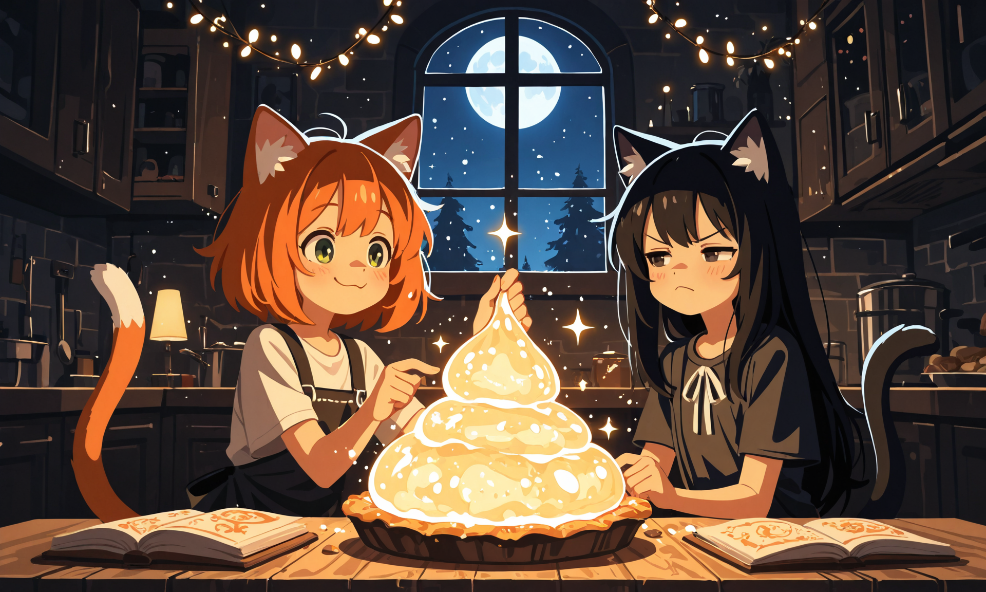 — Но там не написано, что оно должно пульсировать! — возразила черная кошкодевочка, указывая ложкой на миску. Свет исходил от теста ровными волнами.
