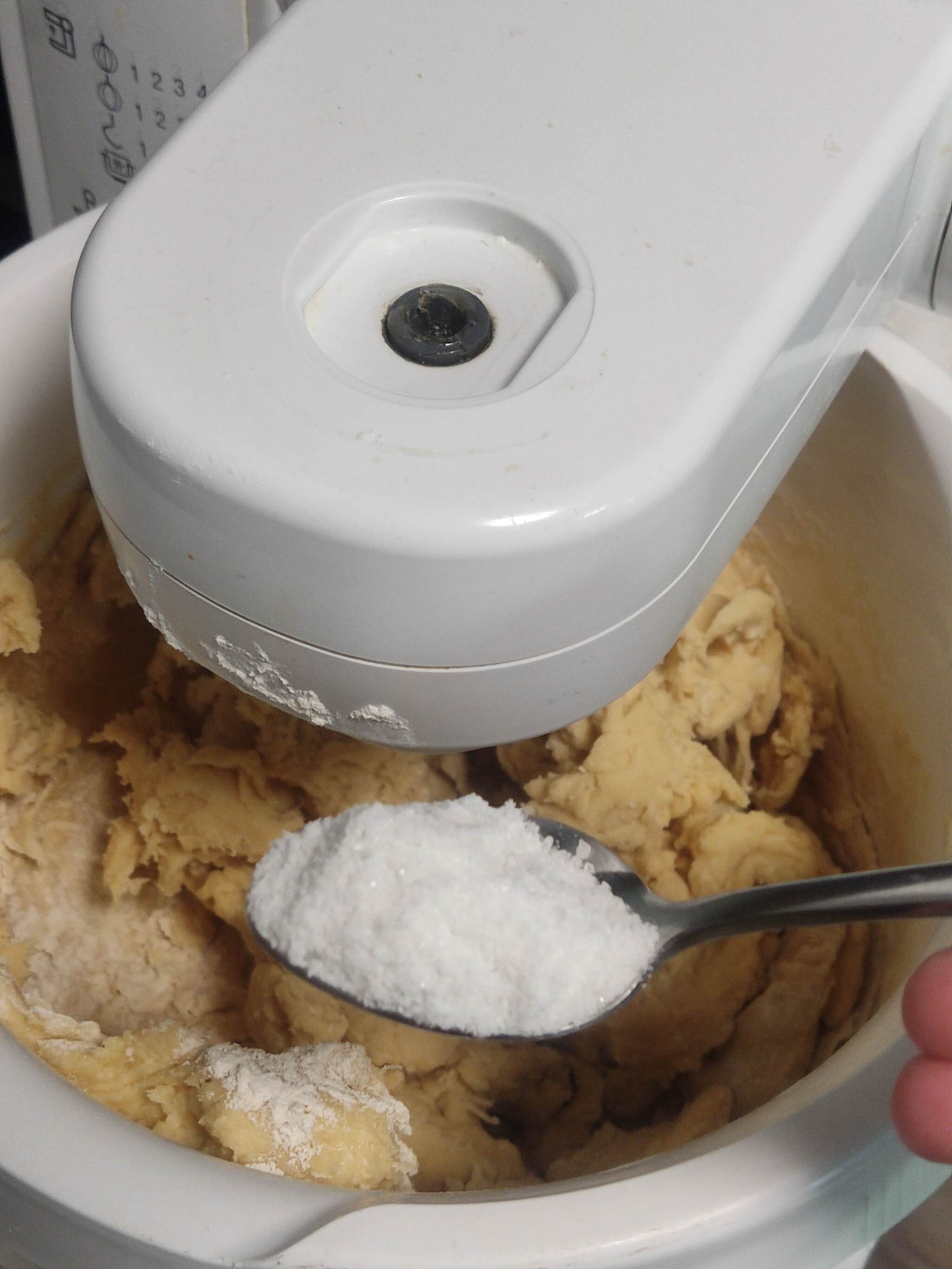 Ставлю, запускаю миксер с крюком, через несколько минут все перемешано.