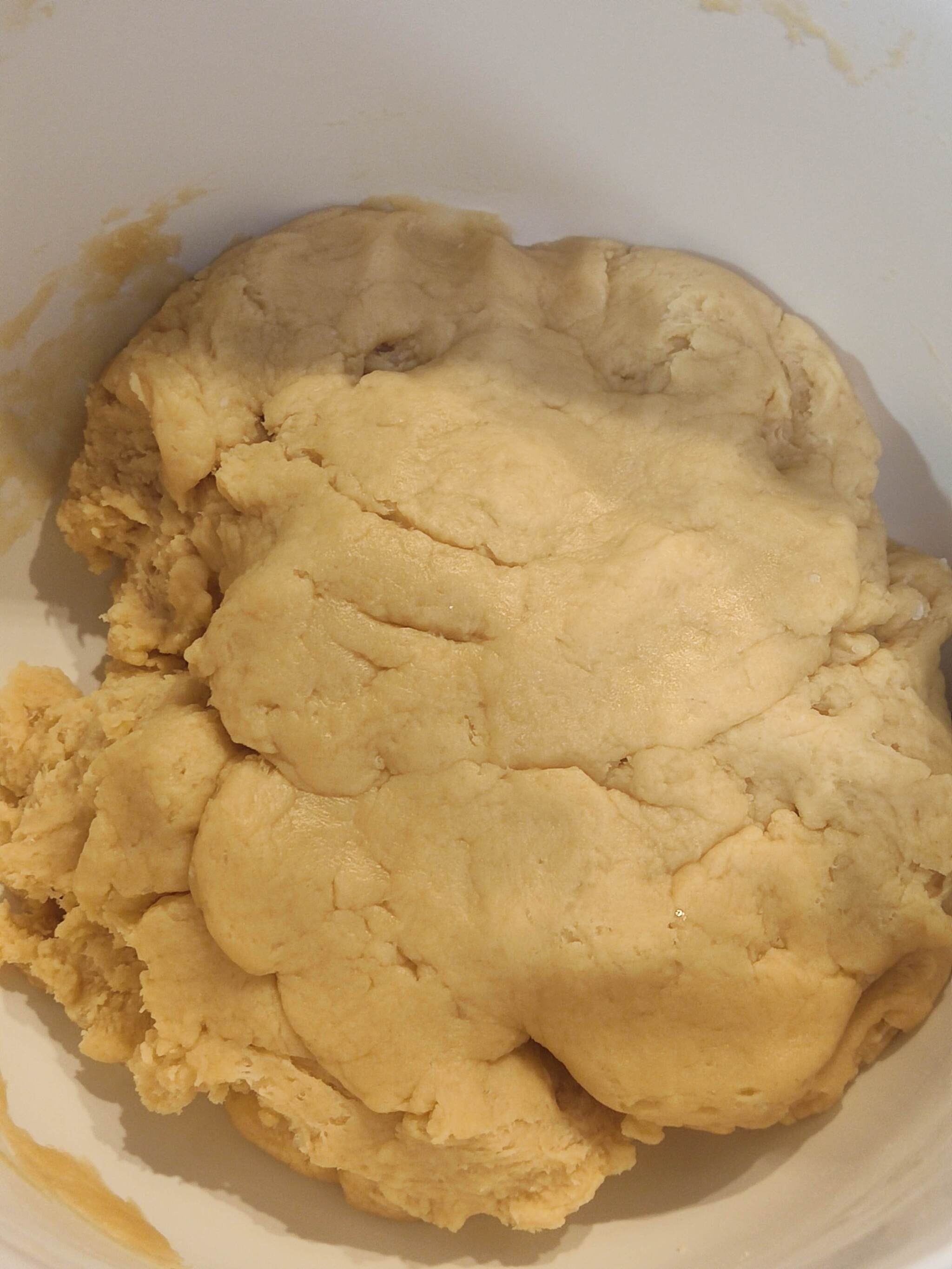 От готового теста отмеряем примерно треть, эту треть отправляем в морозилку минут на 40 (нам его надо будет натереть).