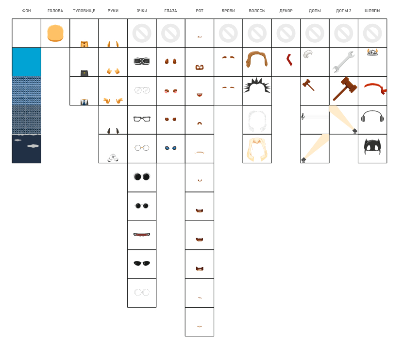 ВНИМАНИЕ! Этих элементов, как и многих других, ещё нет в конструкторе, а сам конструктор представляет из себя первые итерация, где @NikitaSinitin обкатывает механики.В общей сложности добавлено в коллекцию:
