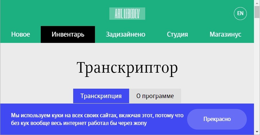 Сайт Артемия Лебедева: "Мы используем куки на всех своих сайтах, включая этот, потому что без кук вообще весь интернет работал бы через жопу".