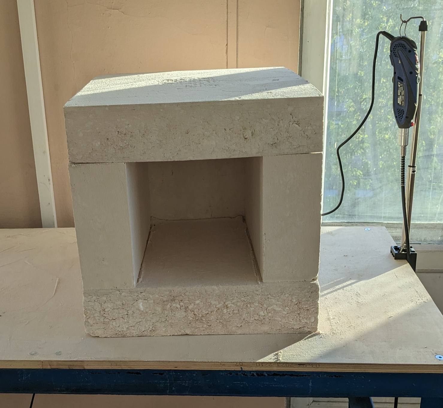 Хоть плиты очень и лёгкие в обработке, они очень пористые и проковырять можно хоть пальцем, но тереть в облаке не полезной пыли пришлось несколько часов.