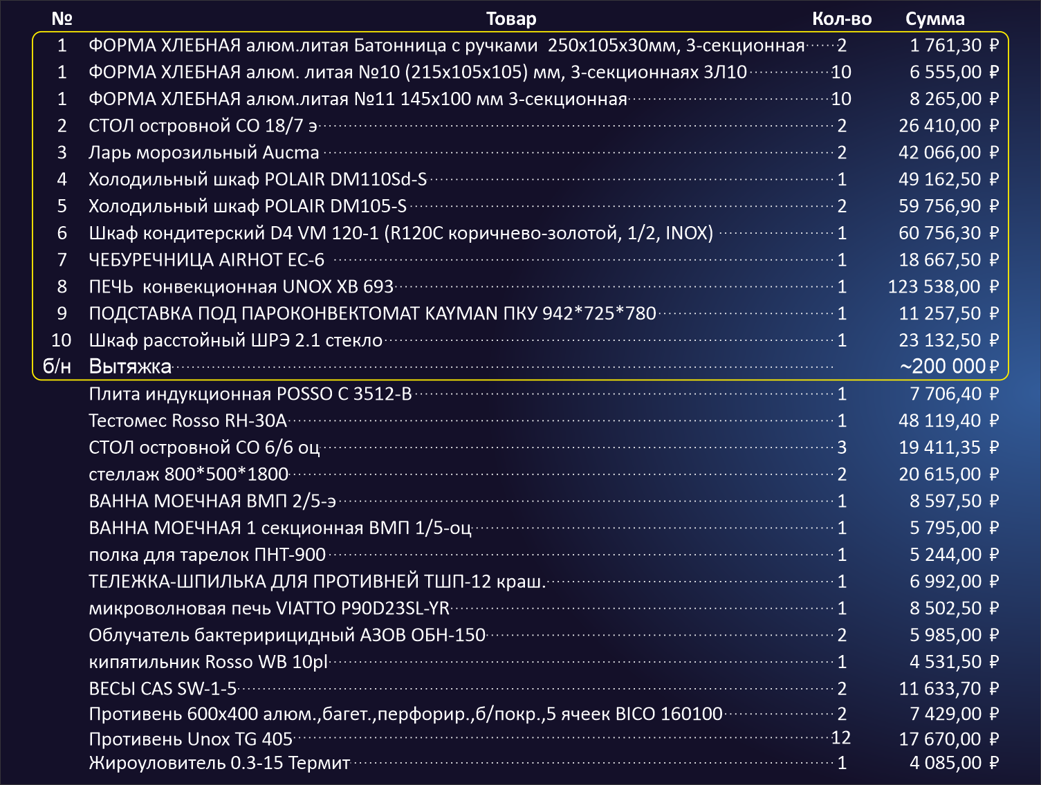 Думаю, наиболее интересным разделом в этом посте будет информация о затратах на открытие пекарни с собственным производством. Поэтому привожу сводную информацию в самом начале поста для тех, кому интересны только цифры. Расшифровка по некоторым статьям расхода будет дана по ходу поста. Цены актуальны на конец 2019, начало 2020 года.