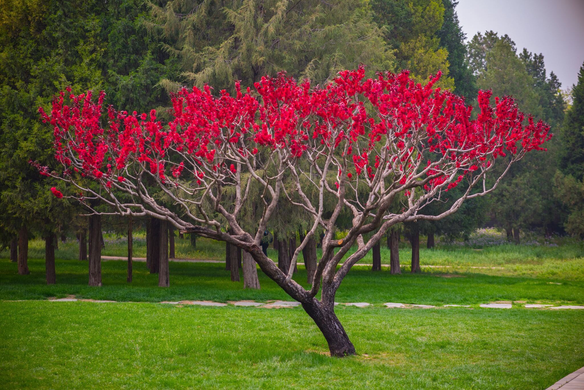 Не знаю, как называются эти великолепные деревья, яркие цвета, минимум листьев. Часто в Китае попадались деревья, кроны которых обрезают, чтобы придать им причудливые и немного пугающие формы