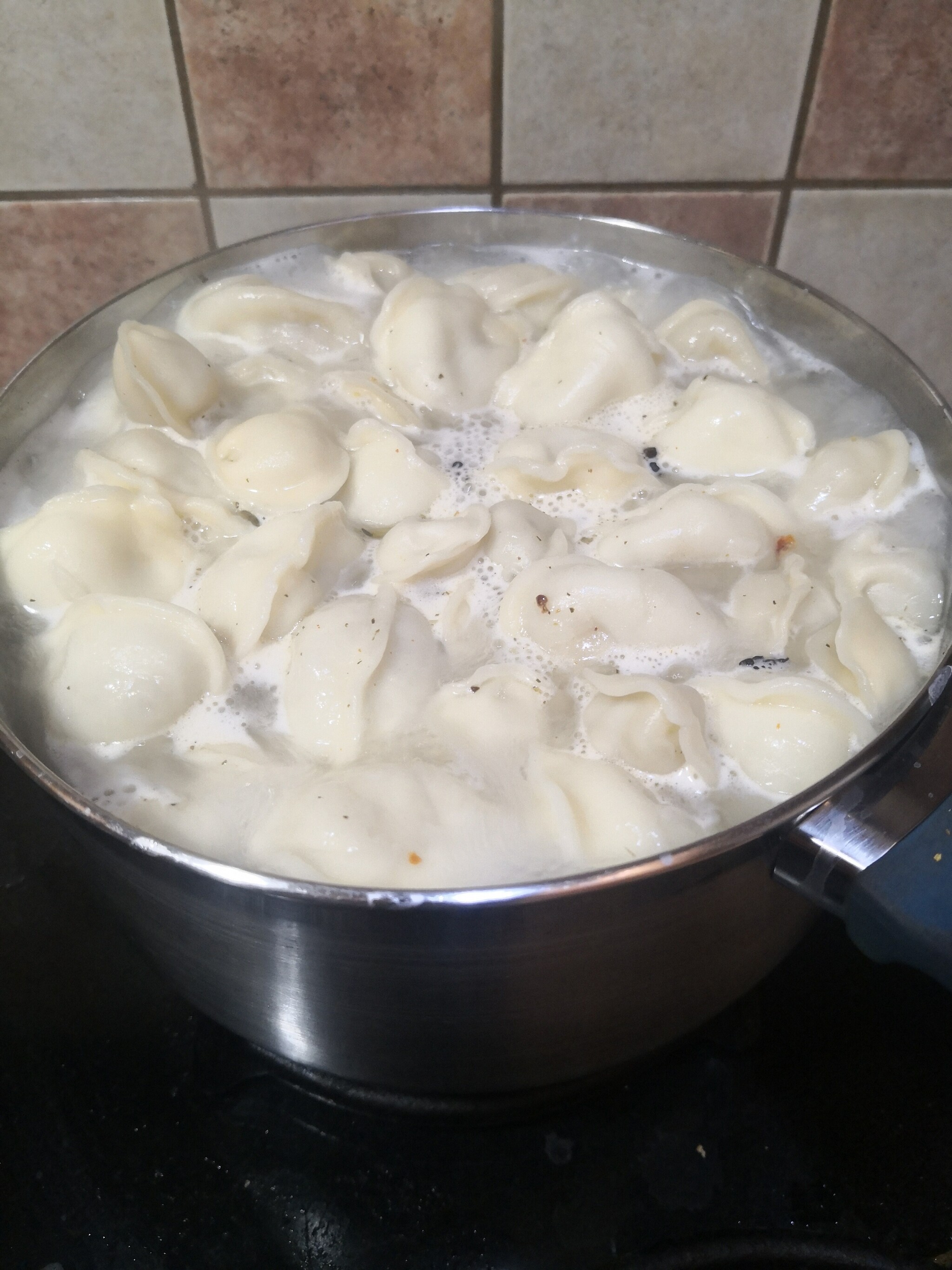 до кучи в кастрюлю бросил остатки пачки *ЦезарЬ класические* и эти оказались гораздо вкуснее, они сами по размеру больше раза в два, но у них начинка-фарш рассыпчатый, мягкий, в цезаре вообще комочек резинки, как будто, по сравнению с ними