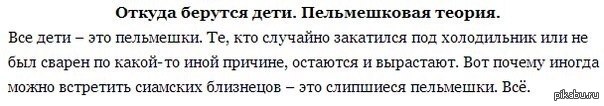 6 SoJay Пельмешковая теория 11 лет назад Еще одна теория в копилку ответов детям на вопрос "Откуда я взялся". Пельмени Дети Происхождение Откуда берутся дети