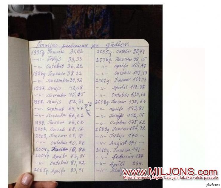 miljonscom Пенсионерка на протяжении 15 лет записывала свою пенсию 10 лет назад Перевод в доллары в комментариях. Пенсия Латвия Деньги Miljonscom