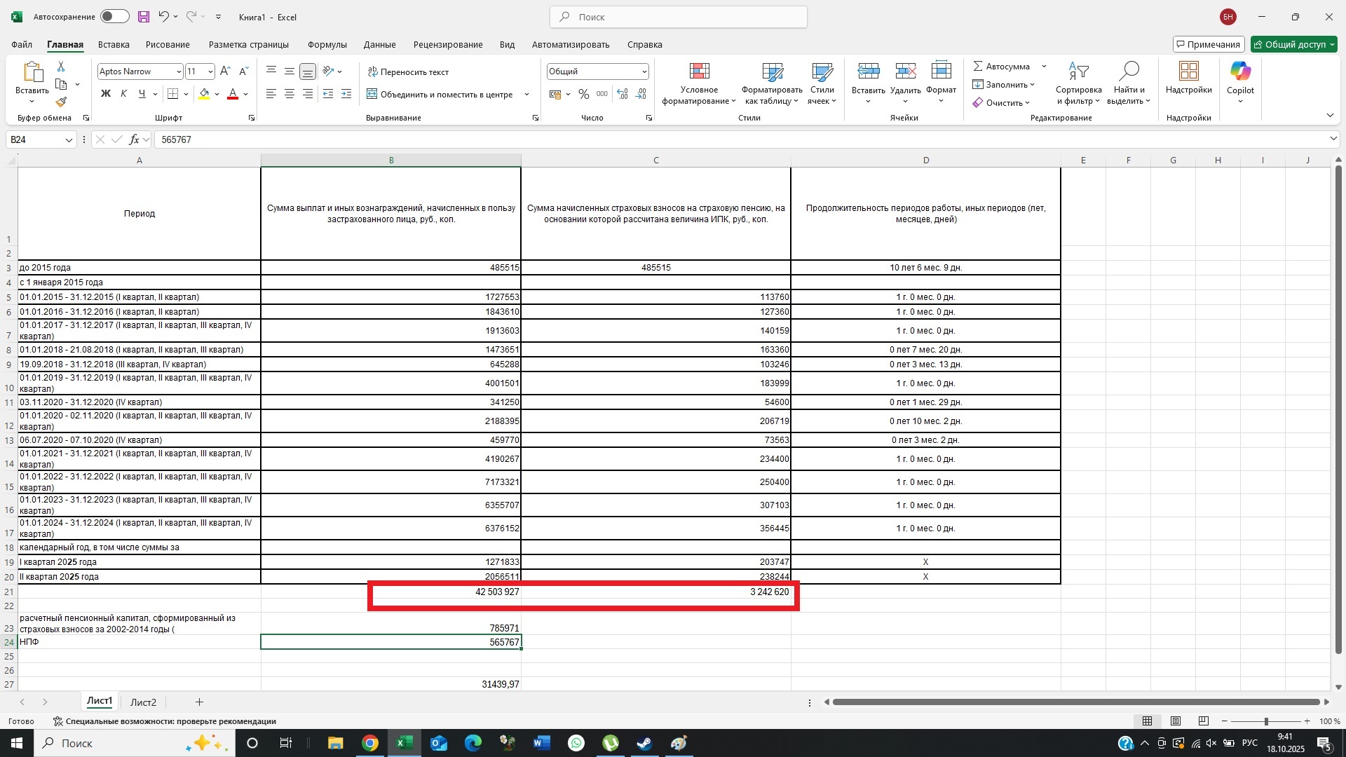 То есть за 20 лет за меня компании заплатили 42,5 млн рублей, конкретно с моей зарплаты в ПФР отчислили 3,2 млн рублей.То есть за 20 лет и 5 месяцев трудового стажа с меня в месяц снимали 12 233 рубля (3 242 000 руб / 265 мес = 12233 рубля). Работодатель за меня платил 160 377 рублей в месяц (42 500 000 руб/ 265 = 160 377 рублей).