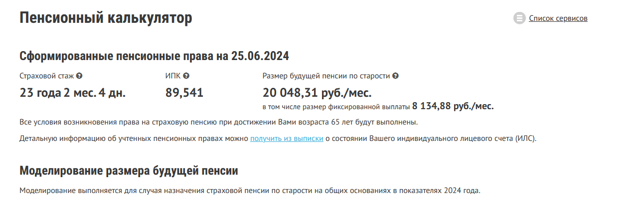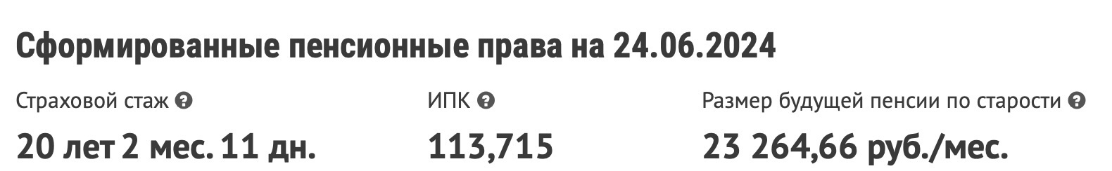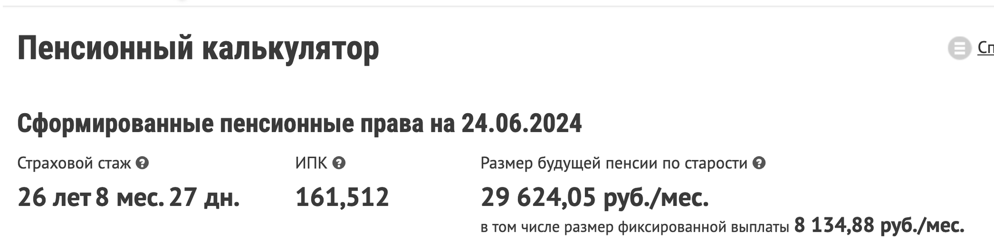 Приведенная цифра показывает, сколько ты будешь получать пенсии, если прямо сейчас уволишься с работы.