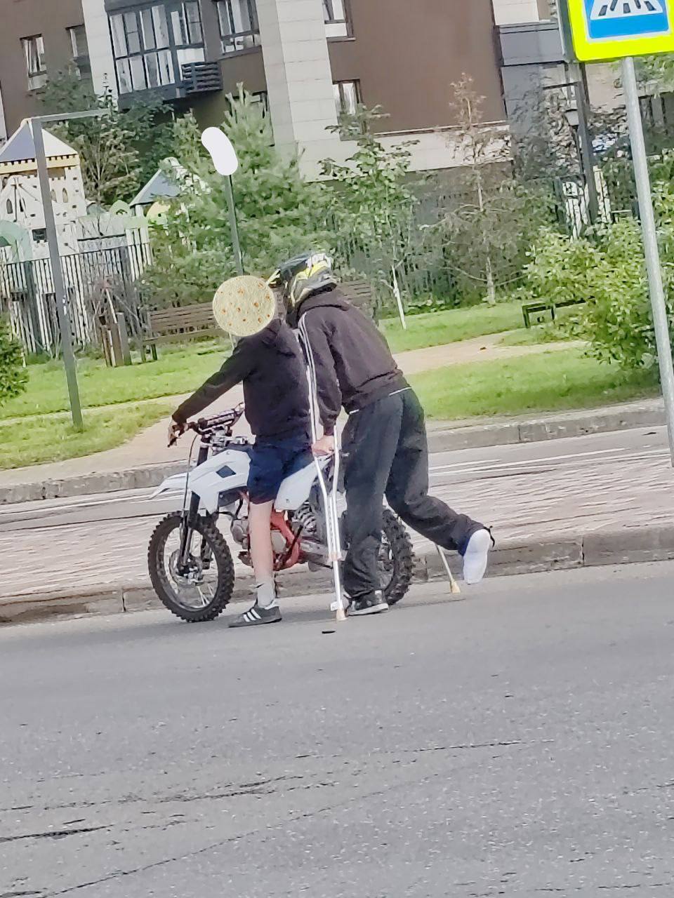 Никому зла не желаю, но фото вышло комичное, один питбайкер на костылях 😅