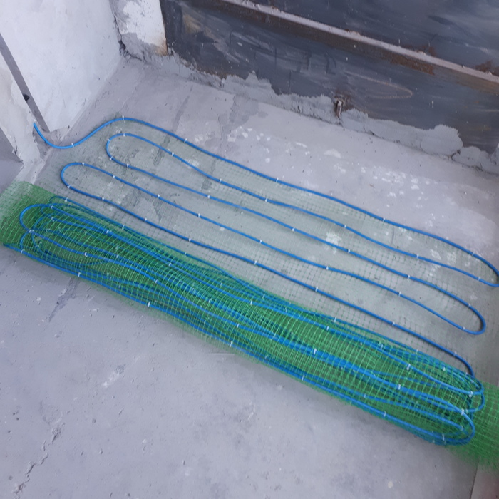 Экономика должна быть экономной! Для теплого пола не стал покупать мат. купил двухжильный нагревательный кабель и стяжками привязал его к сетке