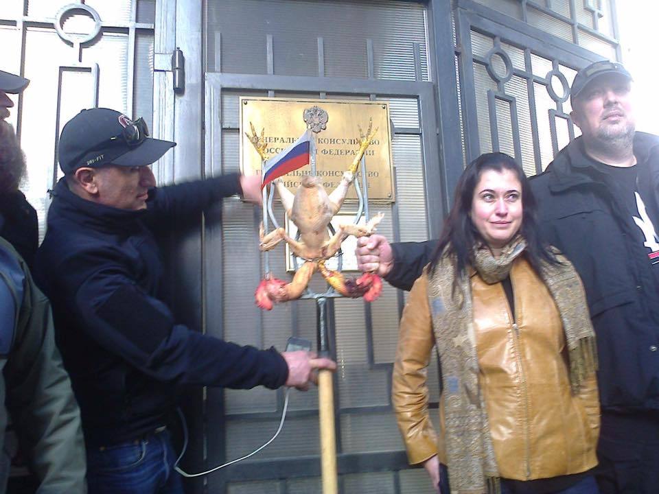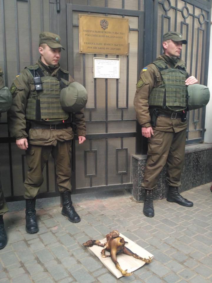 Перед консульством РФ в Одессе зажарили петуха. ДБ!!!