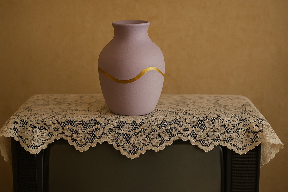 Это была странная ваза. Бледно-сиреневая, с золотой полоской, которая шла криво, как будто её рисовал пьяный ангел.