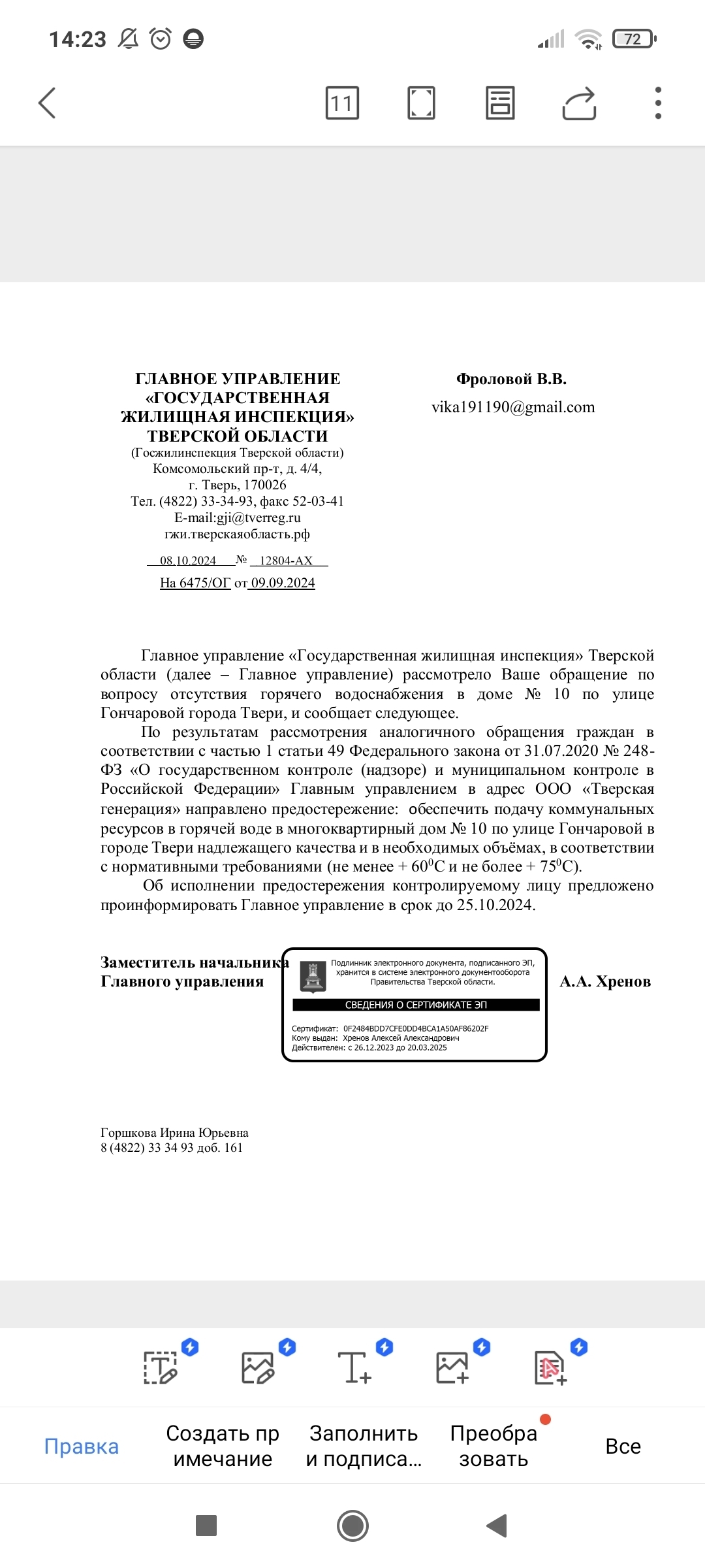 Гы. У меня на руках акт замера температуры горячей воды, подписанный поедставителем Тверской генерации, представителем ГЖИ по Тверской области и представителем прокуратуры. На основании этого акта, тверская генерация откпзалась делать перерасчет. ГЖИ нарушений со стороны твеской генерации не обнаружили, тк нарушен порядок фиксации нарушений согласно ПП357
