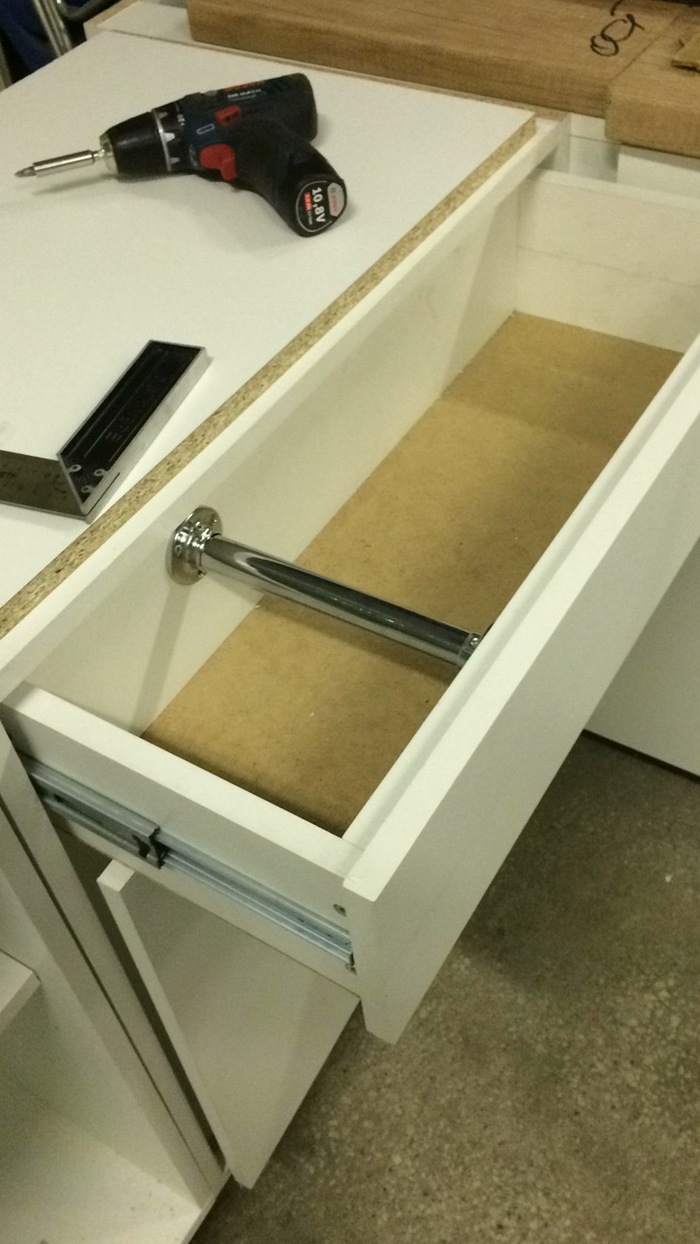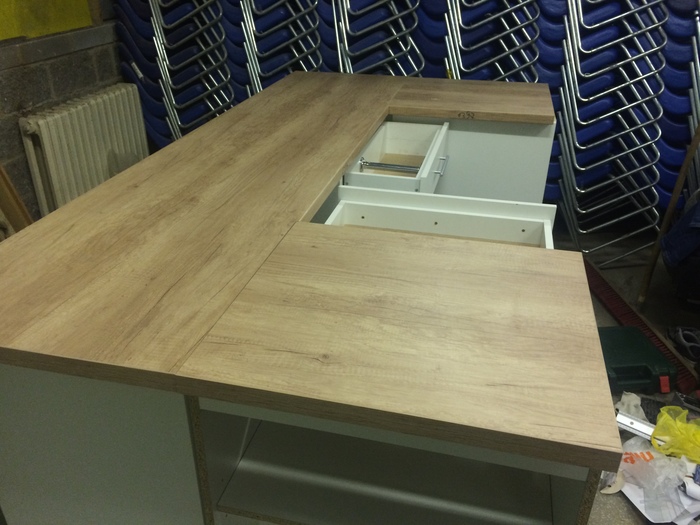 В итоге не были хорошо занянуты столешницы, т.к. в уложенном виде крепеж внутри перекрывался различными элементами ДСП, и затянуть было трудно.