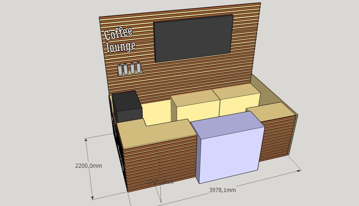 И да, большой квадрат это витрина для мороженого, черный небольшой - кофемашина. размеры реальные, но вот заниматься детализацией большого смысла не вижу (да и не умею в скетчапе почти ничего :) )