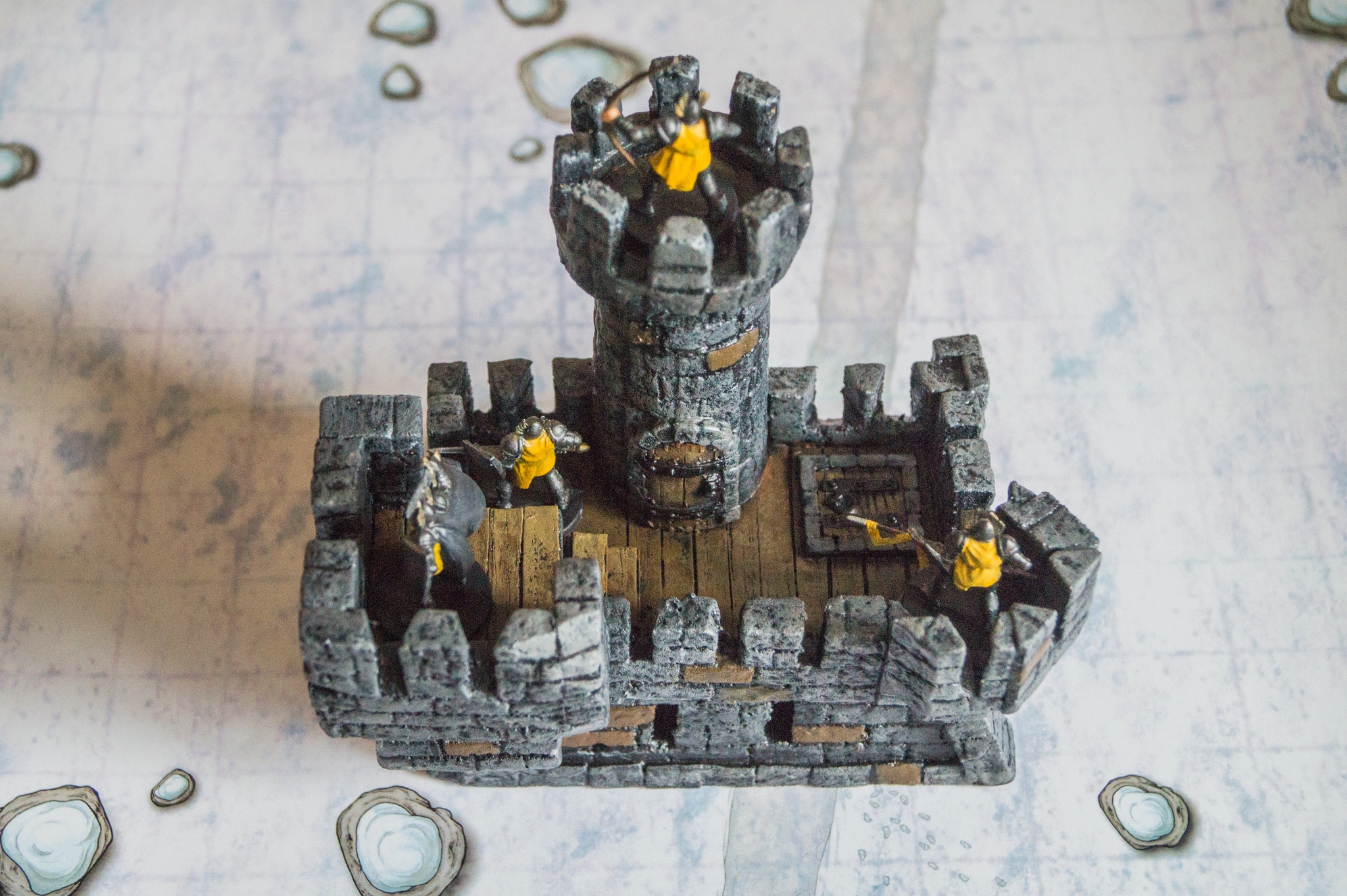По процессу создания. Эскиз. Набрасываем примерные очертания того, что мы хотим видеть в итоге. Чертёж. Чертим с учетом нас интересующих габаритов. Нарезаем стены, башни, фактурим, клеим, красим. Набрасываем деревянные перекрытия (я использовал шпон, но можно и палочки от мороженного) Добавляем двери и люки, распечатанные на принтере.