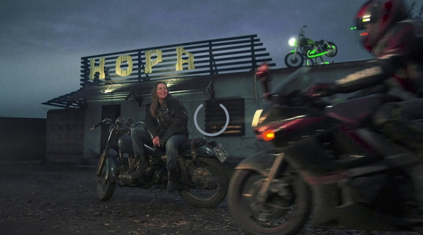 Вот на этом кадре Аня на моте сидит. Почти на открытие бара было снято.