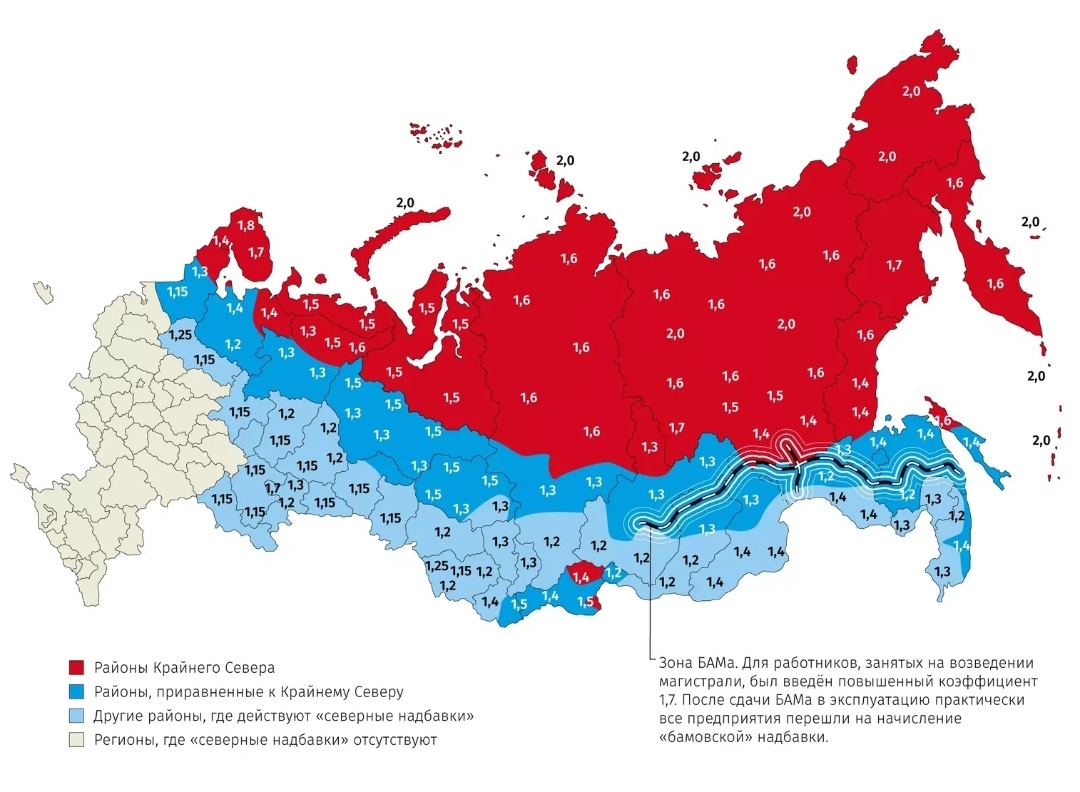 Дело в том,что помимо надбавок и коэффициентов есть ещё разные плюшки от работодателя. Да, все это зависит от конкретной конторы, куда устраиваешься, но как правило если человека зазывают на Чукотку,то ему предлагают: