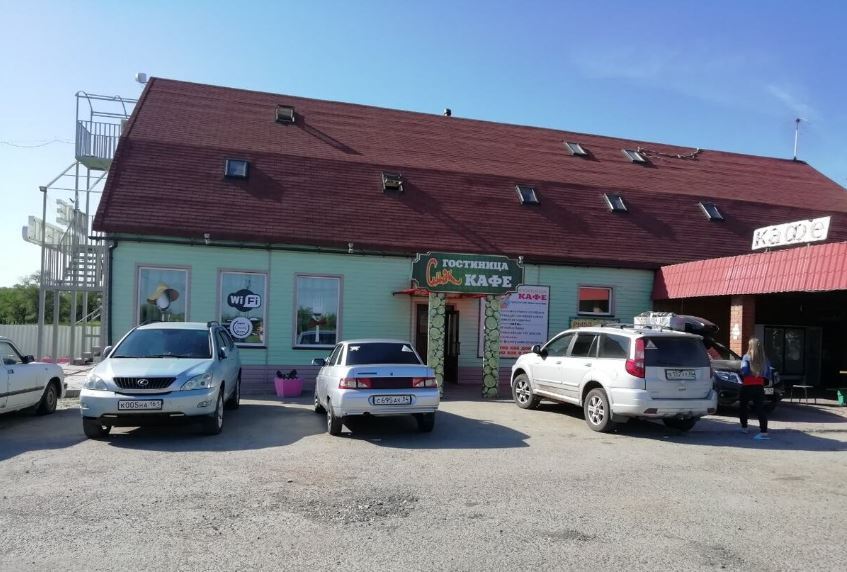 Сразу на въезде в Котельниково встаем в первый попавшийся отель. Гостиница, при ней же кафе. Самое то!