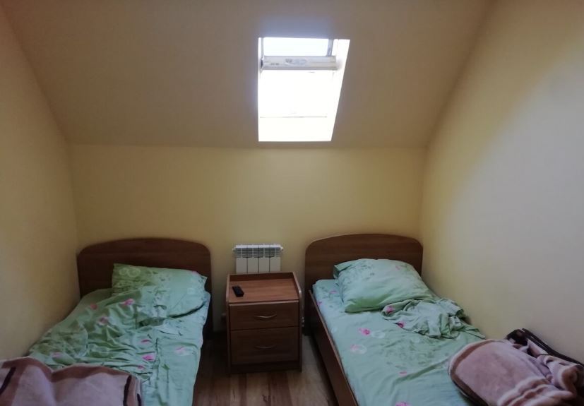 Отель совмещает бар, кафе, столовую, и номера на втором и третьем этаже. За номер с душем и туалетом, в блоке из двух двухместных номеров, мы заплатили 1000 рублей + парковка-50 рублей за машину.