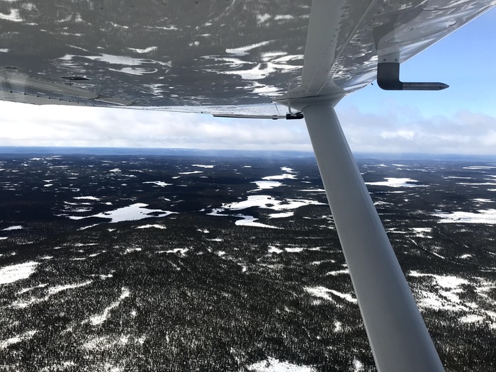 Всё сделано,таможенник пожелал счастливого пути и вот я уже взлетаю и беру курс на север. Вскоре пересекаю границу с Канадой, в эфире уже слышна и английская и французская речь! Полёт спокоен,печка отлично справляется,в самолёте даже немного уютно, по мере продвижения на север снега на земле становится всё больше и больше,несмотря на середину мая. 70% процентов полёта проходило над практически необитаемыми просторами Канады,виды потрясные! Чем дальше на север,тем сильнее облака начинали прижимать меня всё ниже и ниже. Пару раз я пытался пробить облачность,но лёд начинал довольно интенсивно нарастать на передней кромке,скорость падает,сопротивление растёт,а из обогревов,у меня только обогрев винта. Это тебе не реактивная техника,где все кромки греются и самолёт всепогодный. Приходилось возвращаться на прежнюю высоту.