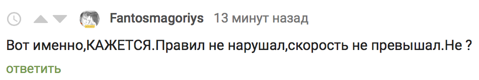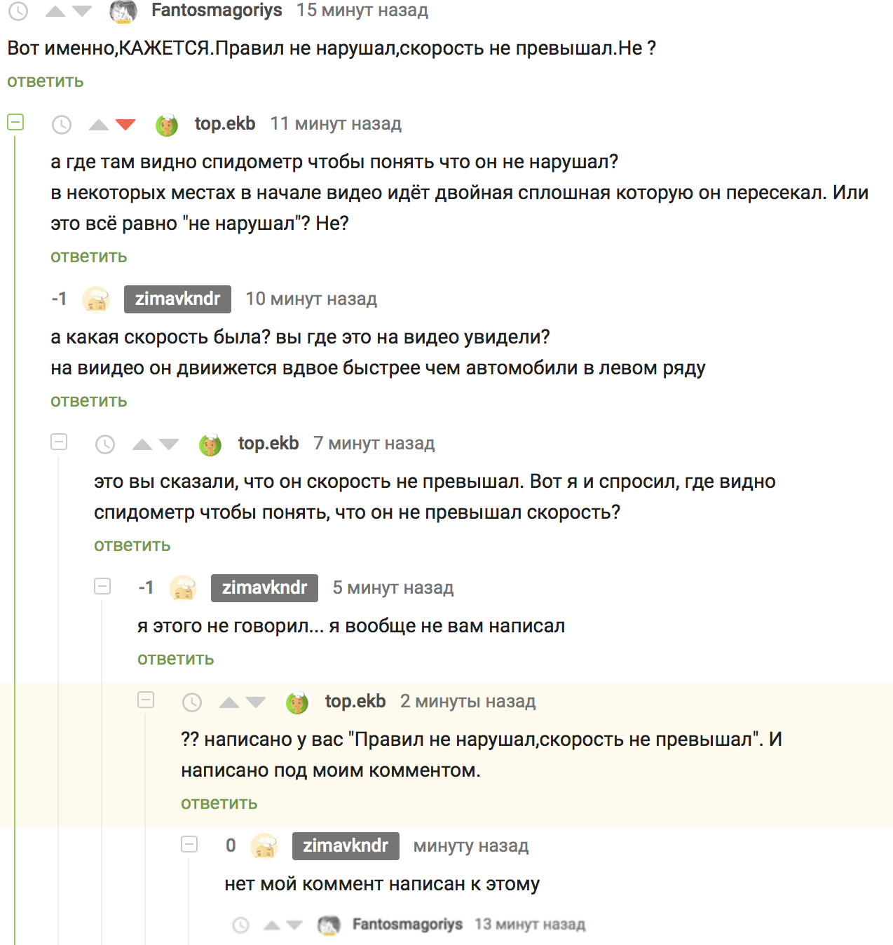 это вы сказали, что он скорость не превышал. Вот я и спросил, где видно спидометр чтобы понять, что он не превышал скорость?