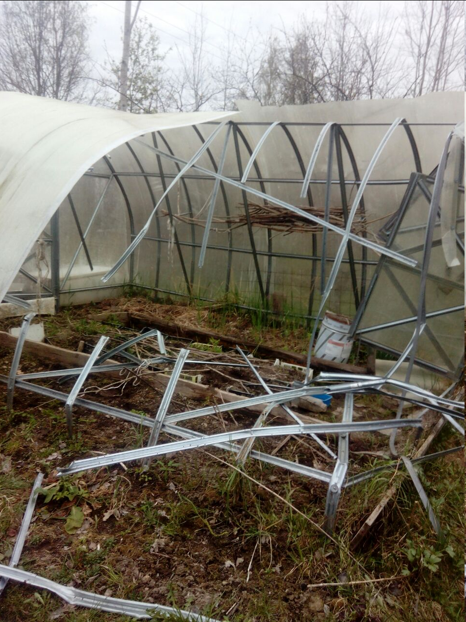 В Подмосковье штормовое предупреждение, а у нас парник решил стать перелетной птицей и полетел на юга.. Еле поймали летучее строение, пришлось подрезать ему крылья и оставить до следующей недели.. Может кто знает, чем бы его укрепить? Думаю про перфорированную ленту металлическую или фигня получится?