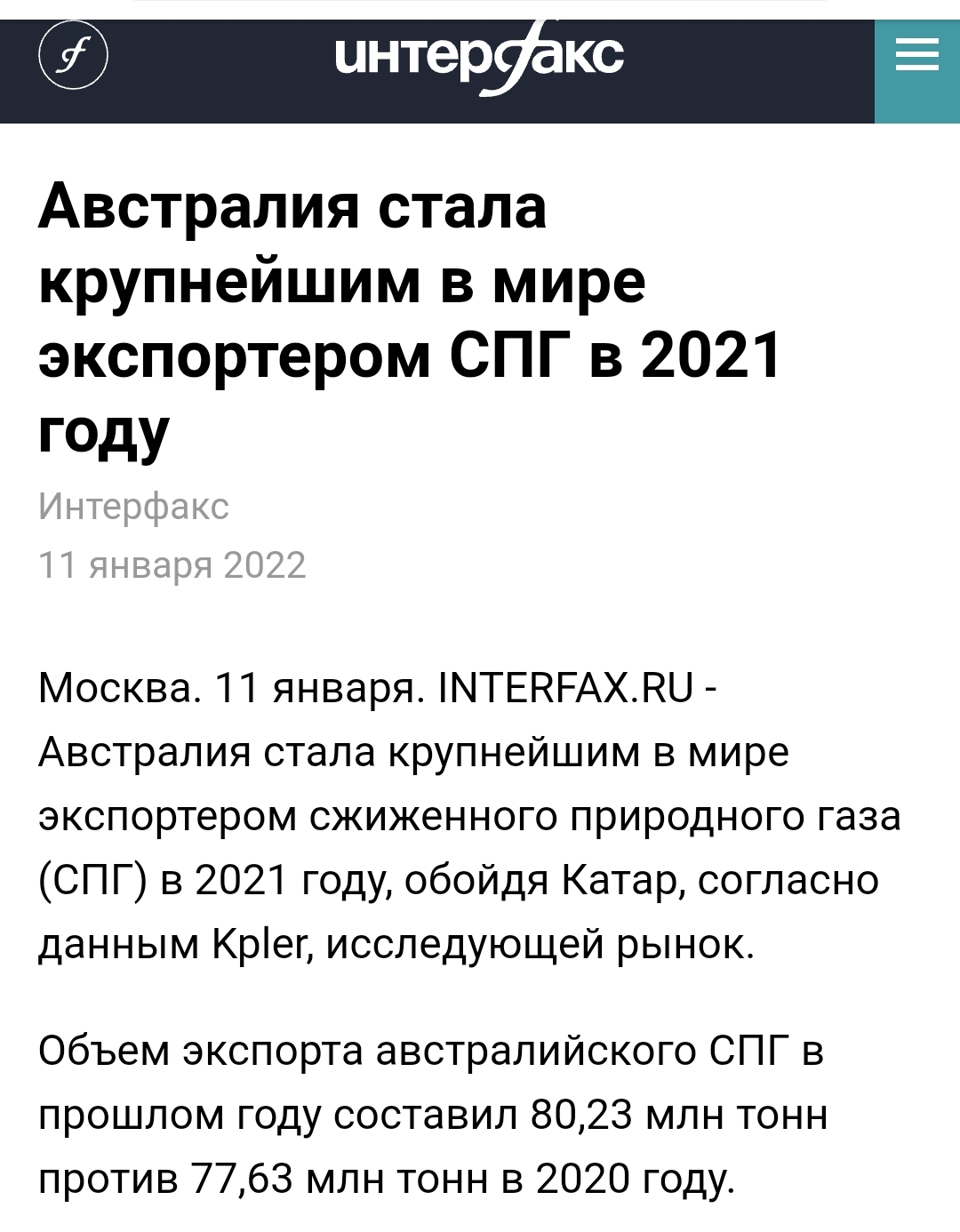 41 clorian Политика Перемога за перемогой 3 года назад https://t.me/UkrainaOnlline Для тех кто не понял в чём суть https://interfax-ru.turbopages.org/turbo/interfax.ru/s/busin... Политика Украина Россия Австралия Газ Длиннопост 3 1 Ещё 0