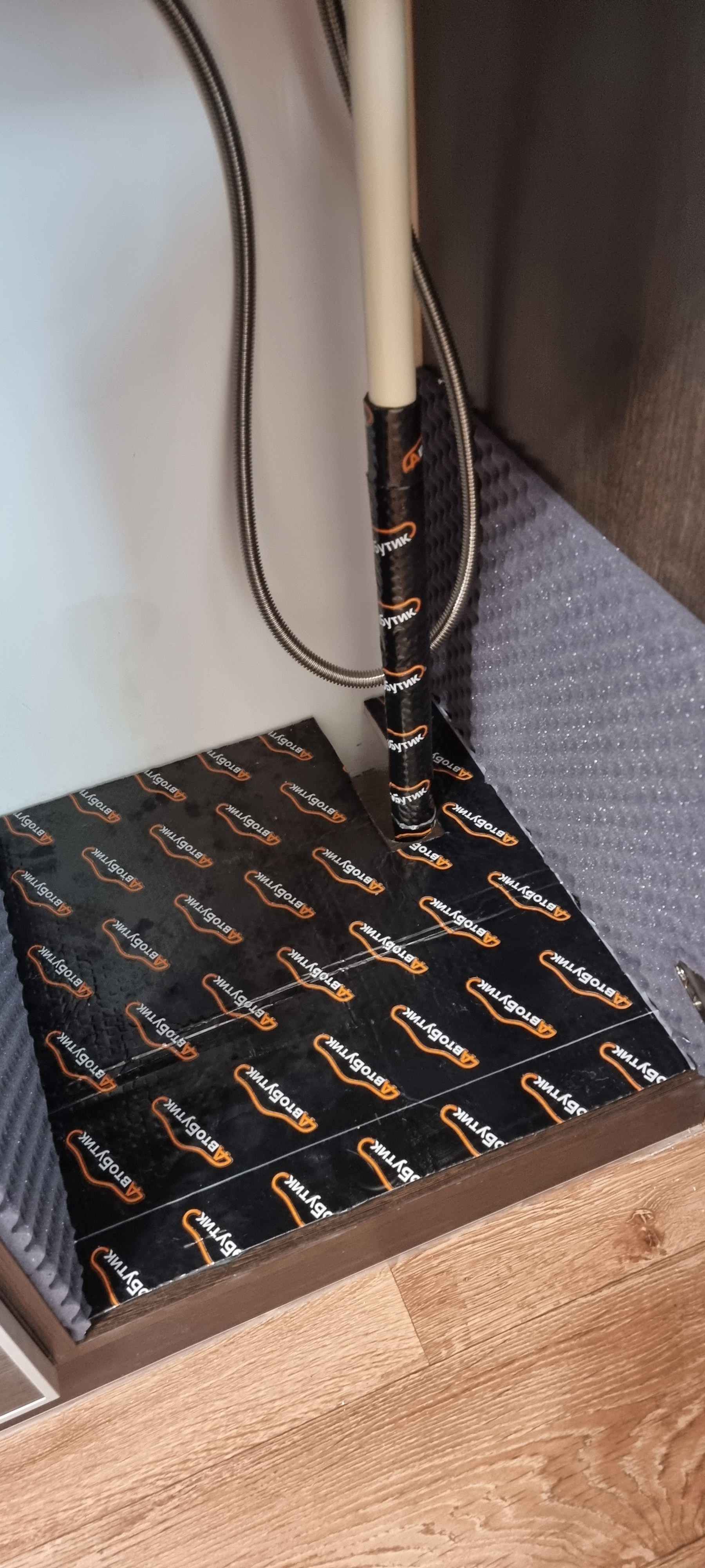 Вешаем родную полку, предварительно наклеив и на неё шумку: