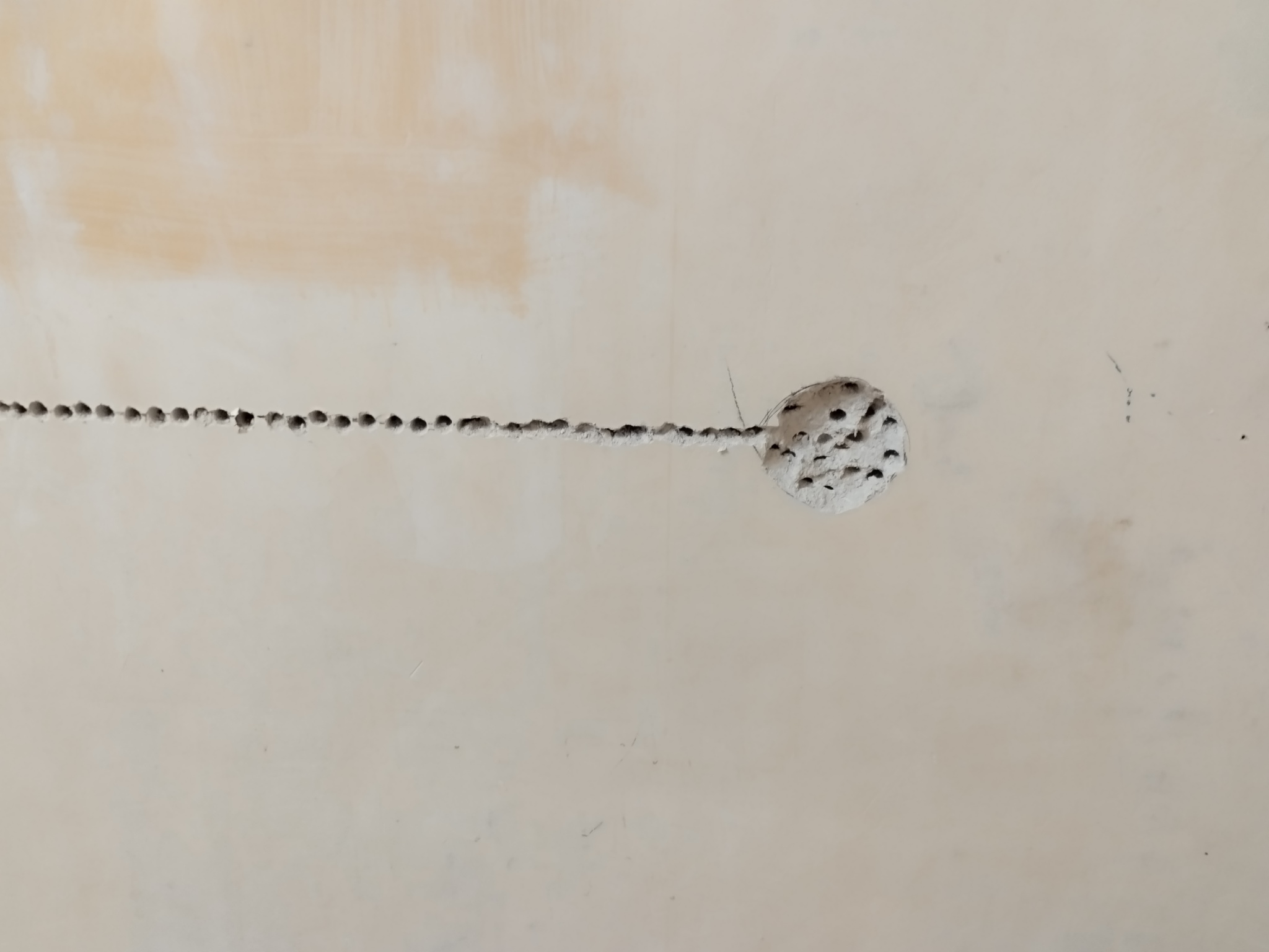 Если кто то думает, что это громко и долго, то нет. Гипс сверлится легко без нажима, шуруповёрт урчит тихо, на всю работу по сверлению ушло минут 40.