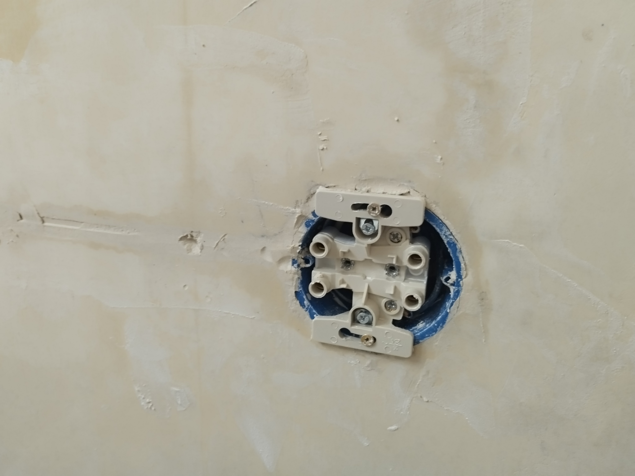 Когда закручивал крепёж розетки, отломился кусок старого подрозетника.