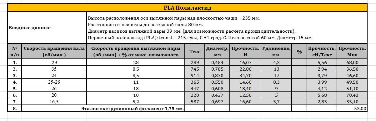 Существующие справочники говорят, например, полипропилен обладает прочностью на разрыв 23 МПа и до 39 МПа для ориентированных волокон, при этом удлинение на разрыв до 700% с сохранением модели: "Чем выше прочность тем меньше удлинение на разрыв (максимум прочности при минимуме удлинения)". Я говорю что это далеко не так, на самом деле возможности в процесса позволяют в процессе формирования волокна управлять его свойствами и получать другие диапазоны прочности от 15 до 35 МПа и, за счет упорядочивания макромолекулярной структуры и зон кристалличности и аморфности, закладывать возможность удлинения от 50 до 700% практически независимо от прочности, т.е. программировать свойства продукта. Или возьмем полилактид с прочностью 53 МПА и удлинением на разрыв 3% - неа, не так. На самом деле, по существующим независимым результатам мы можем получить прочность от 35 до 70 МПа и удлинением от 3 до 17%! И это только два доступных мне для проверки физико-механических свойства. Теперь можно смело и честно сказать, что тот же наш Отечественный полипропилен с прочностью, условно в 20 МПа, ничуть не хуже полипропилена какого-нибудь BASF с прочностью 24 МПа - теперь это простые параметры работы именно их экструзионной линии и больше ничего.