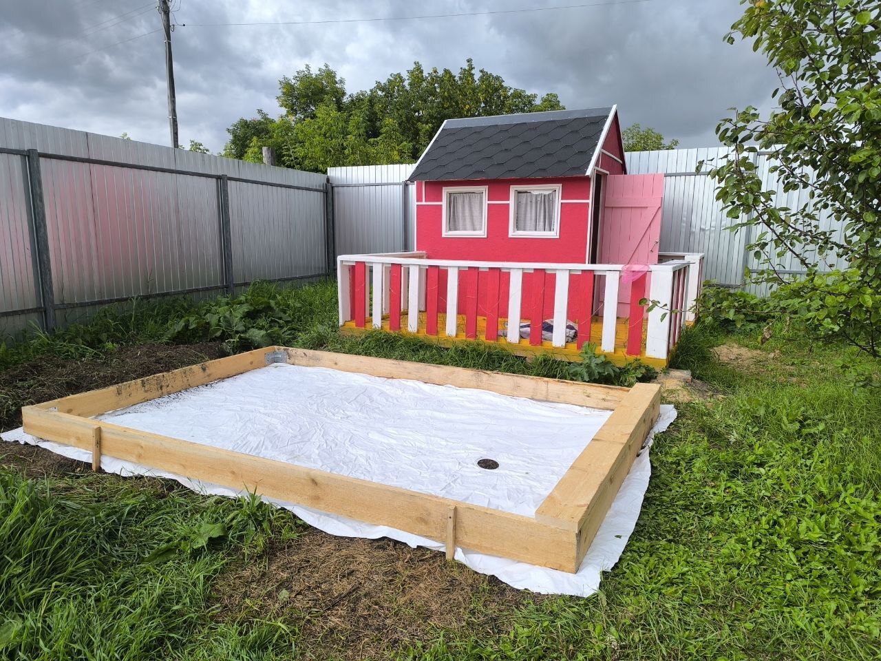 Потом вернувшийся ко мне Владимир соорудил рядом песочницу, а сосед привез для нее грузовик песка.