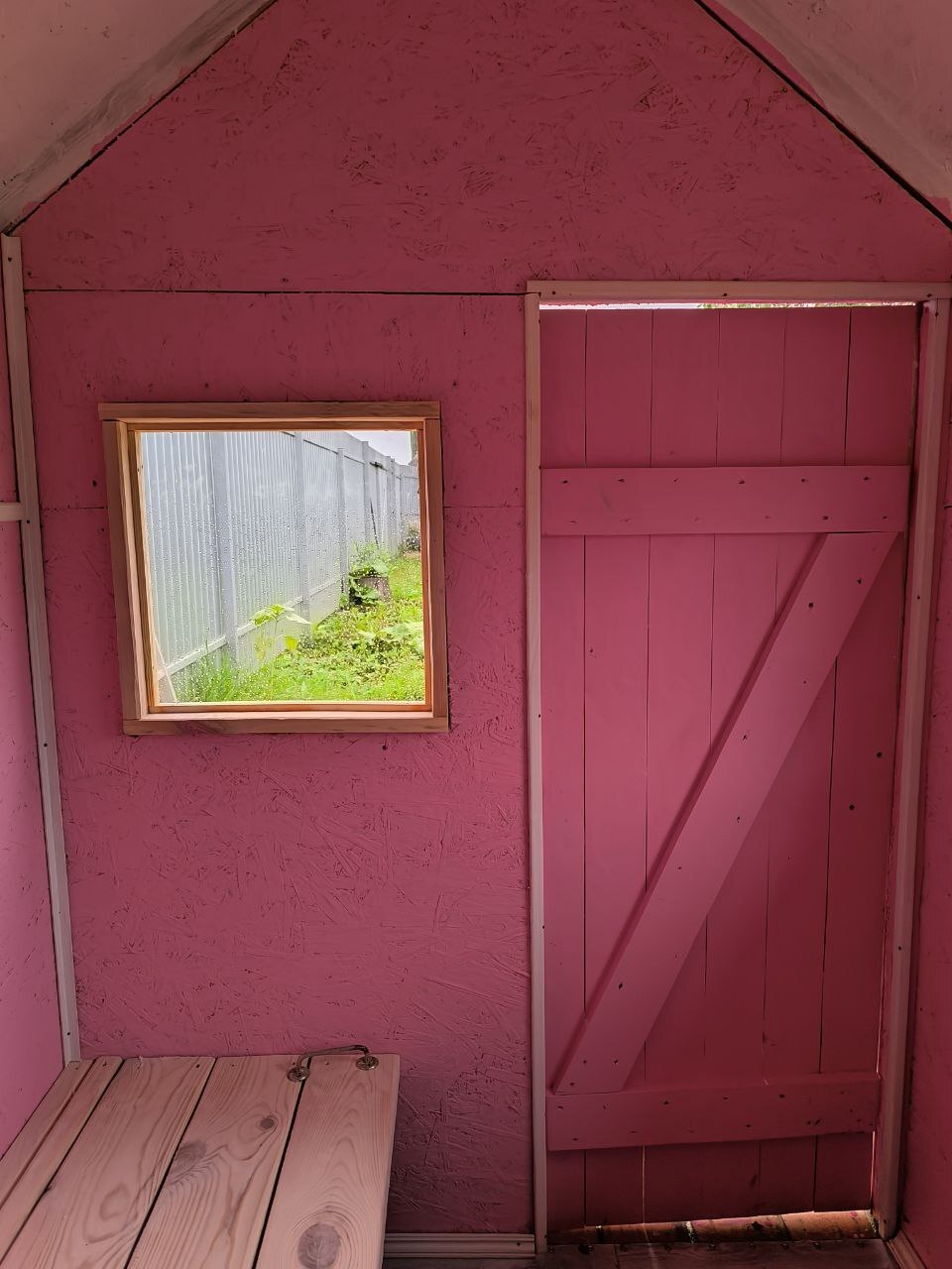 Дочь велела покрасить дом в красный и розовый цвет. Путем долгих дипломатических переговоров удалось добиться хотя бы цветового разделения: красный снаружи, розовый внутри