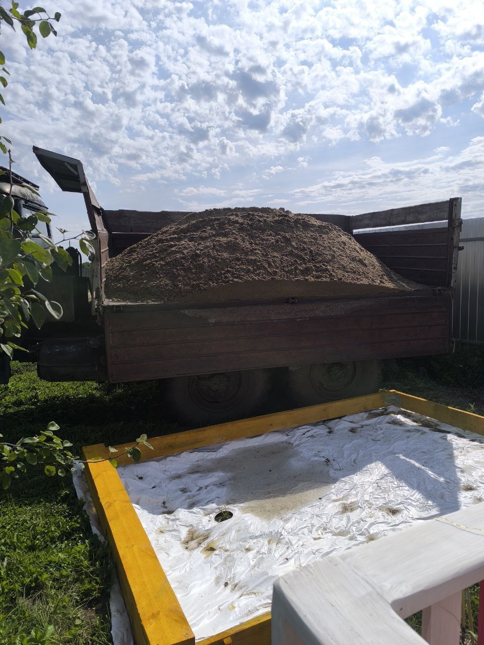 Вываливать песок сосед не стал — сказал, что лучше его руками перекидать. Ну, что ж, надо так надо: