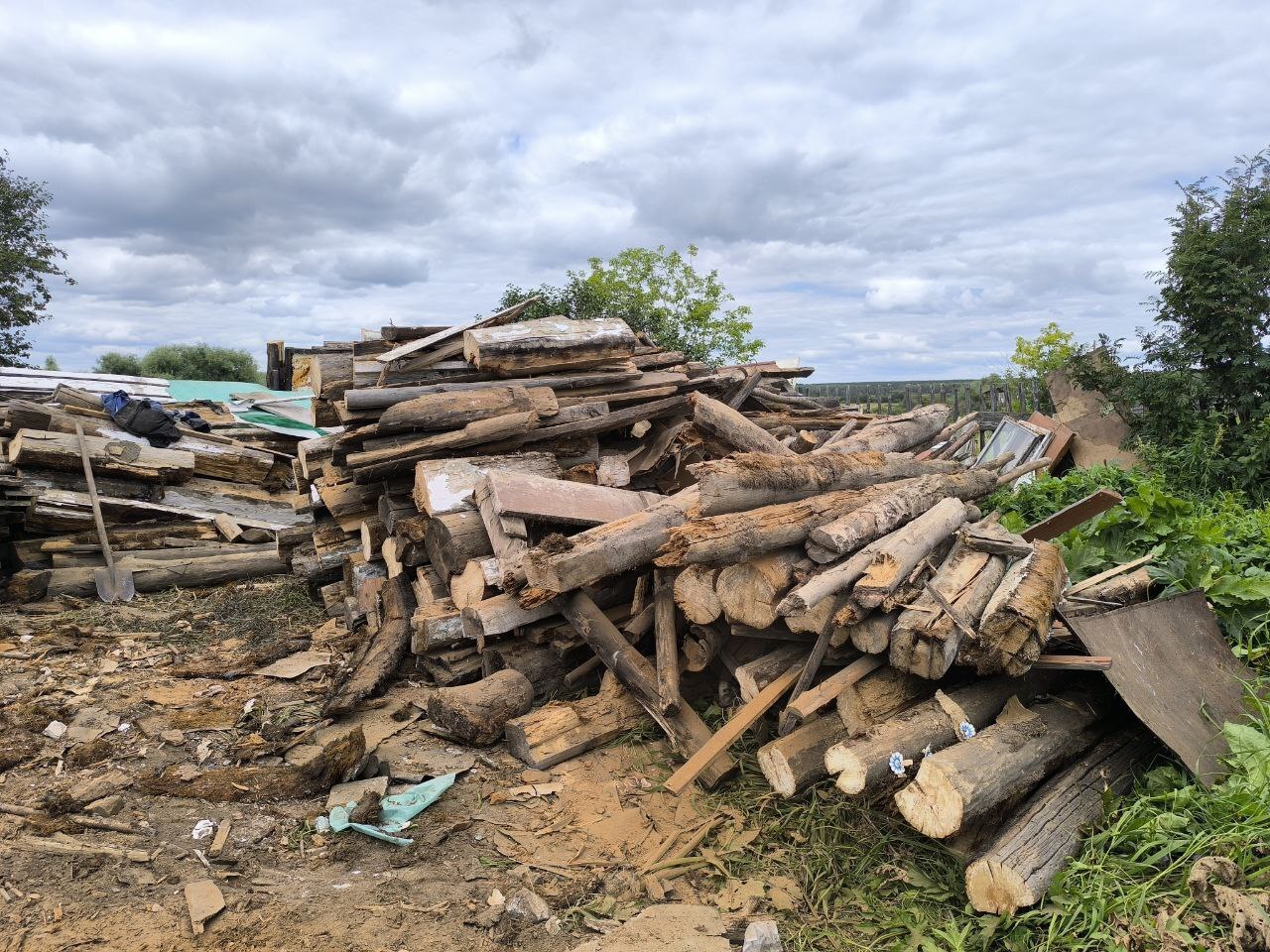 Все остатки от дома строитель аккуратно складывал на участке, чтобы использовать их частично в дальнейшем.