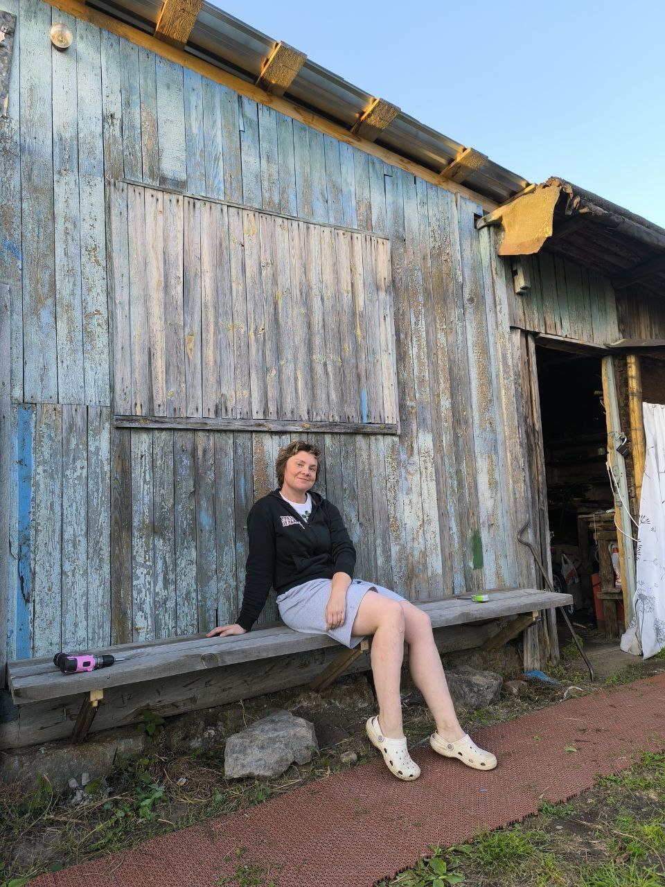 А еще один сочувствующий моему ремонту мужчина пристроил мне к кухне лавочку, чтобы время от времени я могла залипать на улице с чашкой кофе и видом на закат.