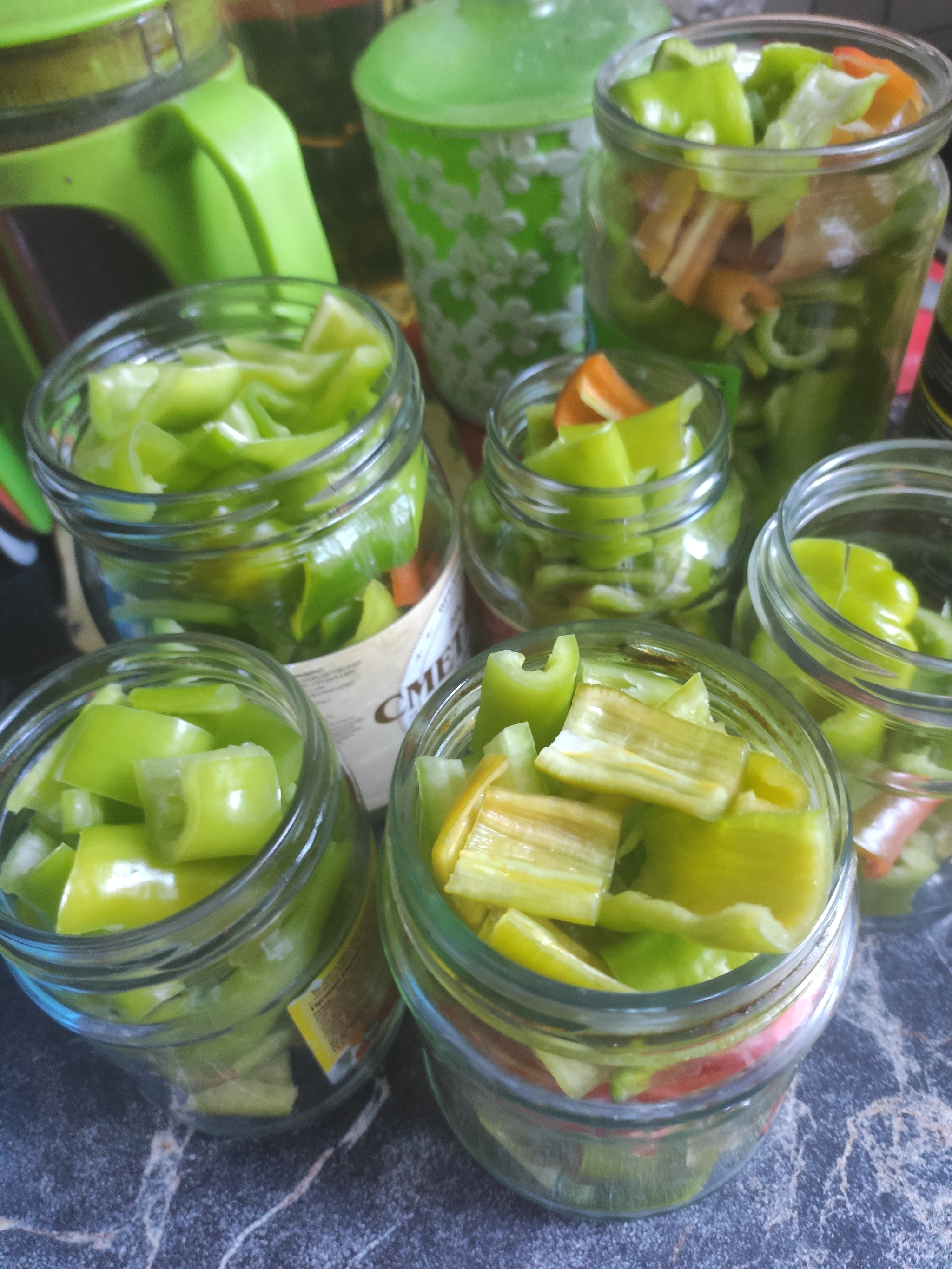 3. Раскладываем перец по банкам, можно добавить чеснок.