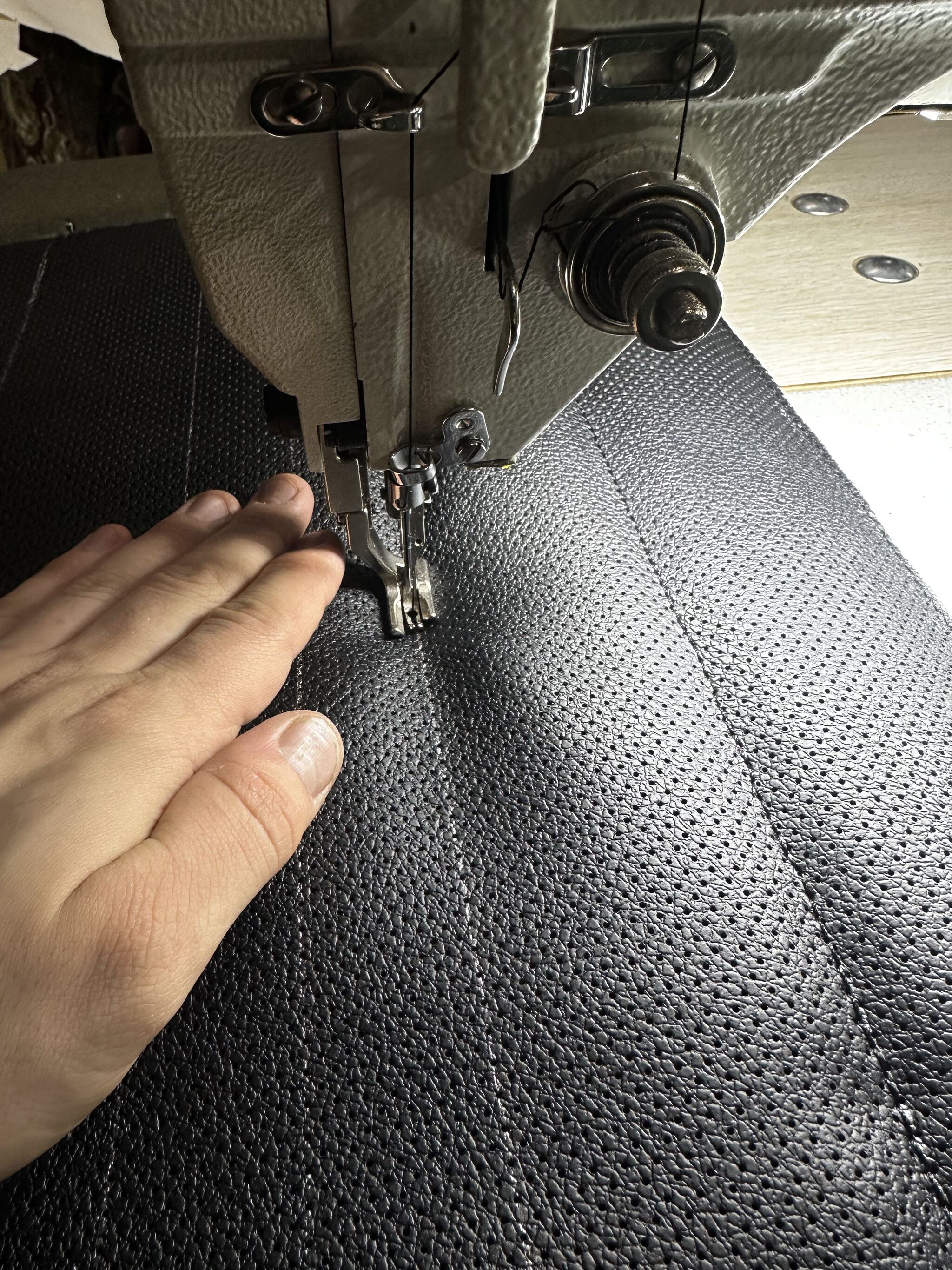 Т.к. тут у нас случай уникальный, и я на старый поролон клею новую кожу, то и изготовление элементов тоже уникальное. Берем просто в тупую обводим поролон и все. Изи.