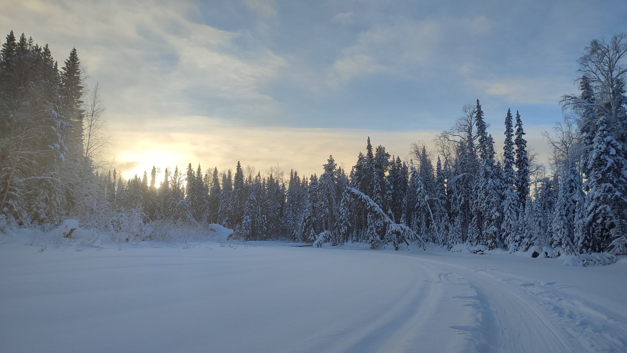 Ещё дома у нас был дискус, что брать, лыжи или снегоступы. Колян был за лыжи, я был за снегоступы. После долгих дискуссий, мы всё-таки решили идти на лыжах. Конечным аргументом Коляна было то, что мы точно не знаем какой будет наст на верхах, если плохой, то лыжи будут лучше. Я предполагал, что с настом при тех ветрах всё будет впорядке, но если придётся экстренно спускаться вниз, то на лыжах конечно будет попроще съехать. Забегая вперёд, могу сказать, что это было не самое удачное решение. Снегоступы были бы в тех условиях удачнее. Так как дорога на перевал накатана снегоходами, а наст на верхах не сильно уступает по плотности пеноблокам.