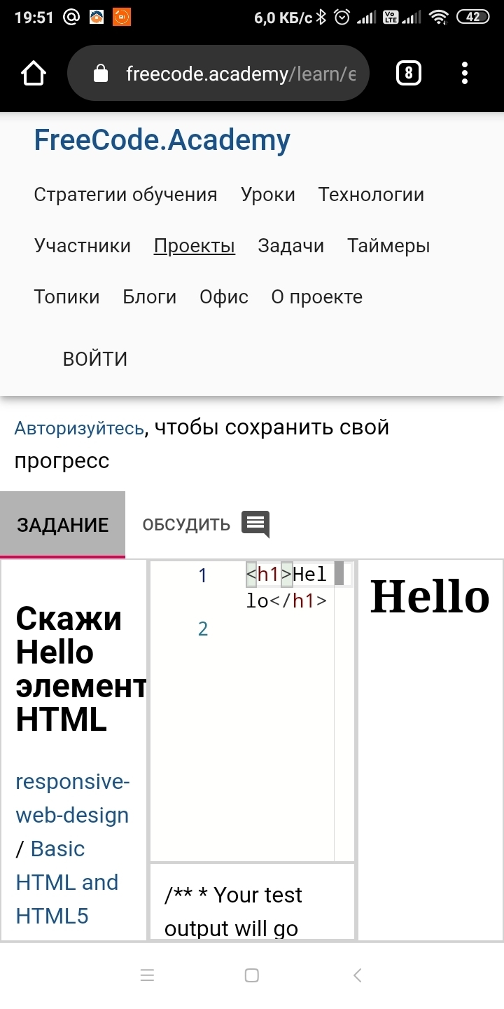 Материал для новичков, кто хочет освоить HTML. Здесь есть около 30 интерактивных уроков, переведенных на русский: https://freecode.academy/learn/sections/ck4h36qjt0hoq0782jj6...
