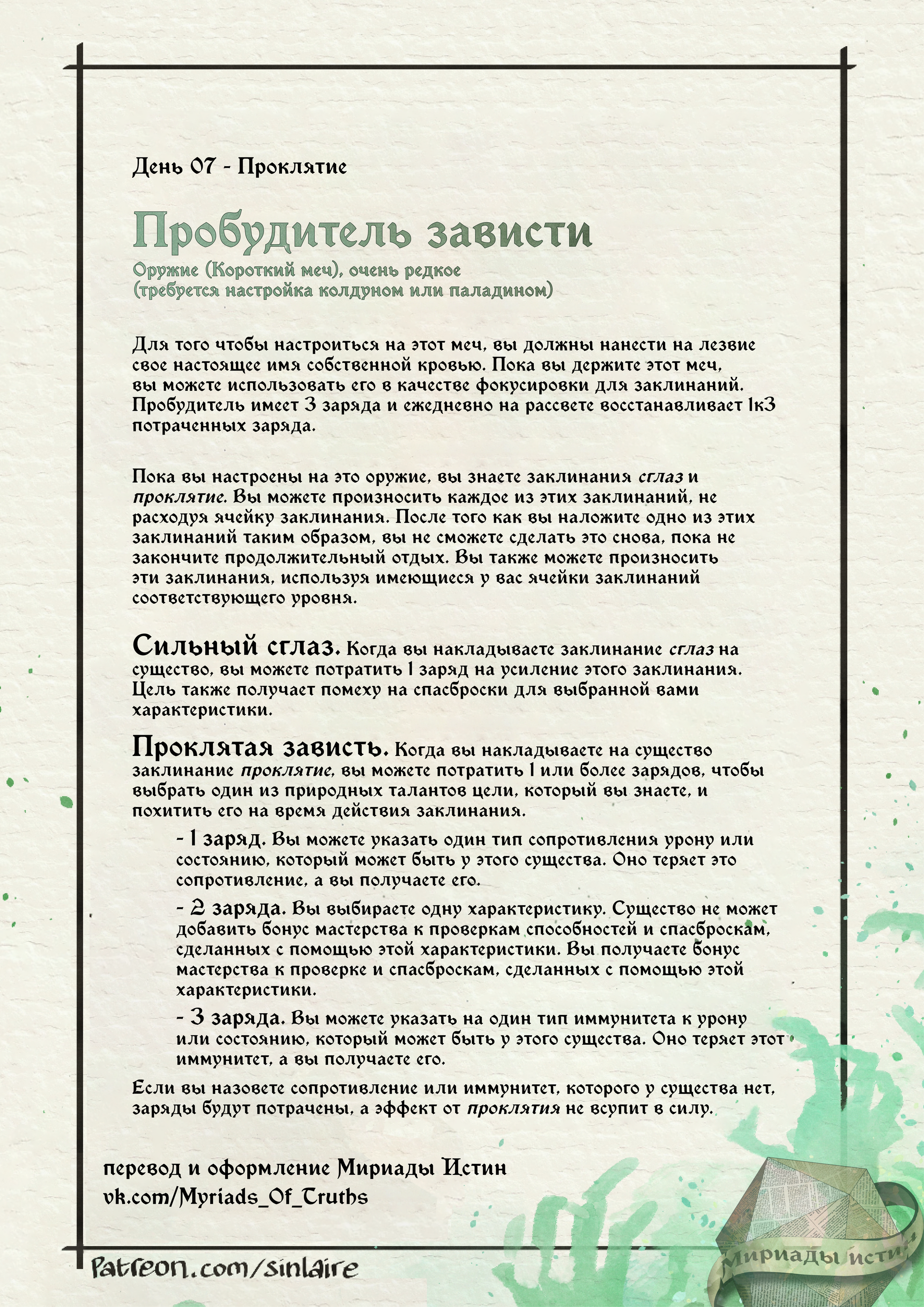 Пробудитель зависти в ваших руках заставит завидовать каждого колдуна в округе, ибо с его помощью вы сможете распространять свои проклятия и сглазы с новой силой!