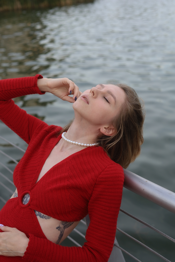 Перевязала в последний, восьмой раз. Есть ещё что дорабатывать, но в целом очень хорошо! Все доработки буду тестить на новом платье (вяжу чёрное такое).