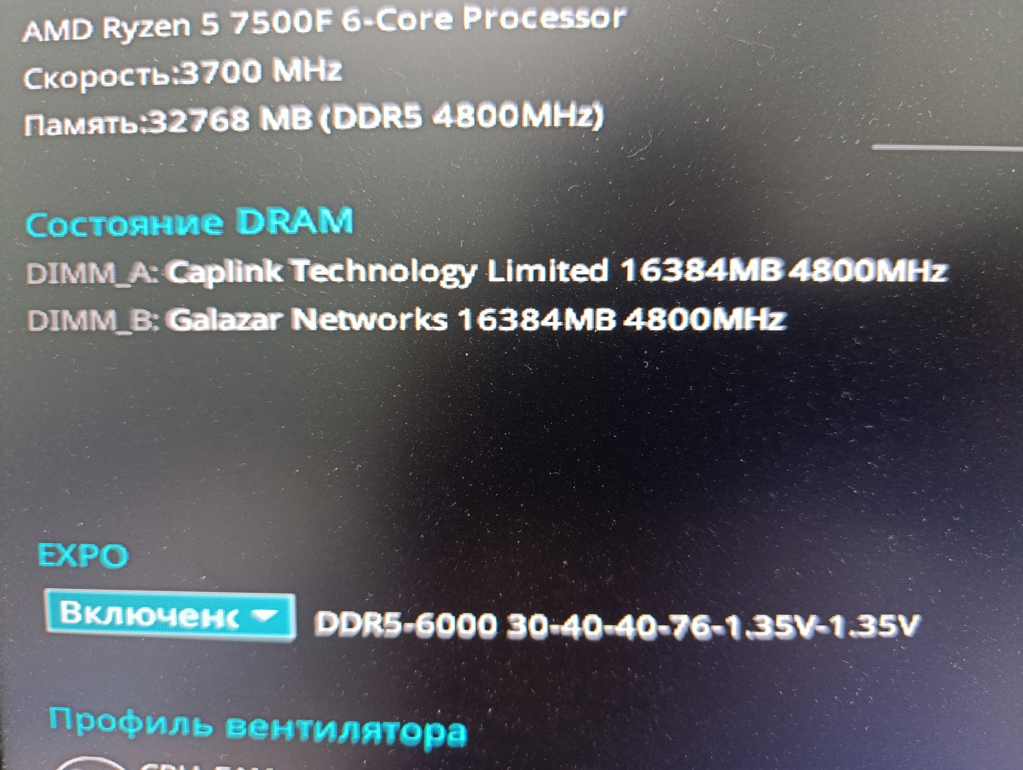 Всем здравствуйте, такая ситуация, собрал в середине июня ПК, и с самых первых дней во время более-менее требовательных игр в рандомные моменты происходит резкий перезапуск (Резко гаснет экран монитора, отключаются клавиатура, мышь, но подсветка компьютера (Вентеляторы, оперативная память) не перестаёт работать. Затем через секунд 5 происходит самая обычная загрузка Windows.) В просмотре событий пишет kernel power 41, однако этот код не даёт почти никакой информации. Я перепробовал всё что знаю: тесты в OCCT, victoria и другие, режимы гибернации и авто перезагрузки отключал, заходил в безопасном режиме, с 10 виндовс переходил на 11, потом эту 11 полностью переустанавливал с нуля, менял БП на старый, заведомо рабочий, оперативную память менял местами, ставил по одной плашке в первый и второй разьёмы (На моей материнке только 2 места под оперативу), ставил разные EXPO профили, полностью убирал их... В OCCT при полной нагрузке всего вылетов абсолютно не бывает, температуры в пределах нормы... Также есть один странный симптом, в Биосе первые несколько дней оператива отображалась с правильными названиями, но потом поменялась на две разные неизвестные фирмы, причём они прикреплены не к плашкам оперативы, а к ее слотам (при смене плашек местами и использования их по одной названия не меняются), фото прикреплю. Я НЕ ЗНАЮ ЧТО МНЕ ДЕЛАТЬ, ПОМОГИТЕ ПОЖАЛУЙСТА!!!