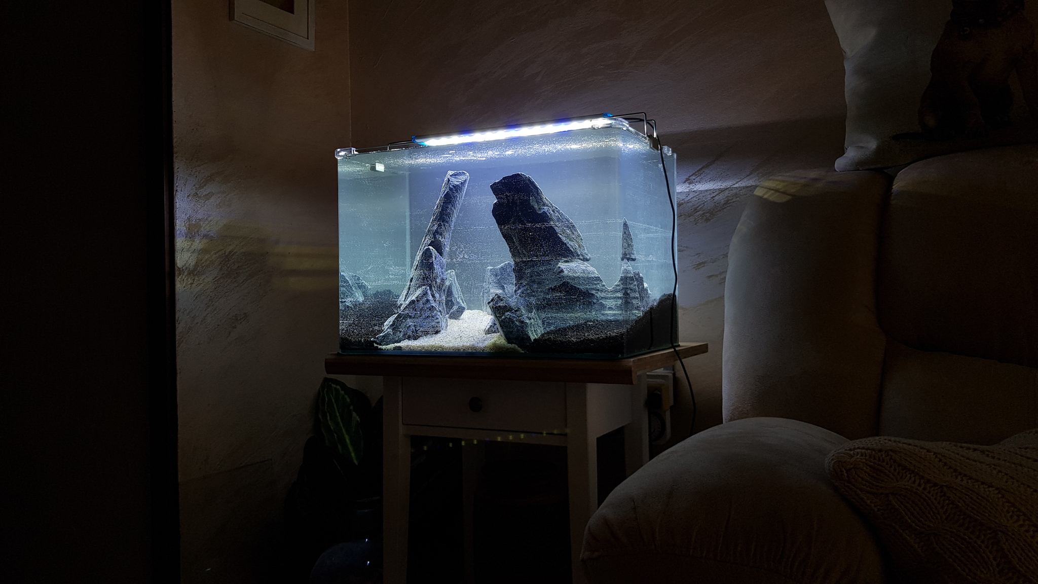 Сегодня залита вода. Завтра замена 90%. Через день высадка растений, потом замена через 3 дня по 50%. 4 раза. Потом по 30% раз 4-5 раз. Далее 1 раз в неделю 30% по состоянию.