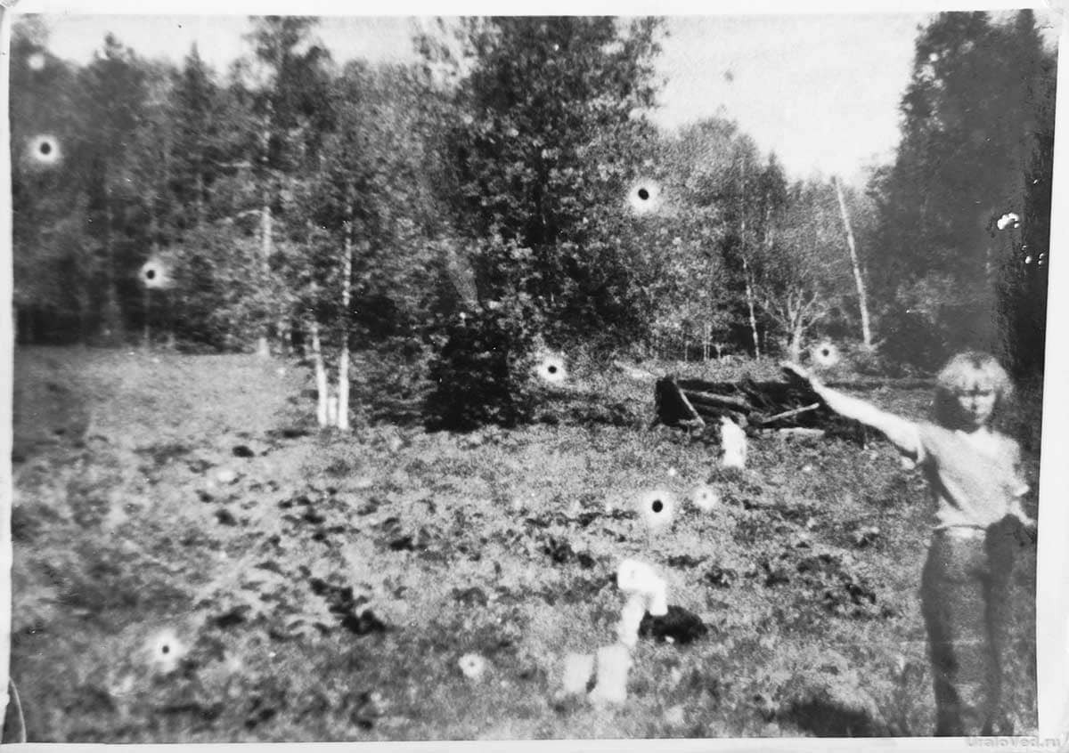 В качестве иллюстрации разумной деятельности в данном месте часто демонстрируют фотографии с "шарами", невидимыми в момент съемки. Однако, подобные световые пятна возникают из-за отражения света от частиц влаги в воздухе, летающих насекомых, или же являются следствием несовершенства фотопленки или процесса проявки. Этот снимок был предоставлен Сергеем Беляевских, исследователем родного края из Молёбки. Изображение выглядит впечатляюще, но его природа вполне прозаична – это результат ошибки при обработке или печати фотографии. Никакой сверхъестественной подоплеки здесь нет.