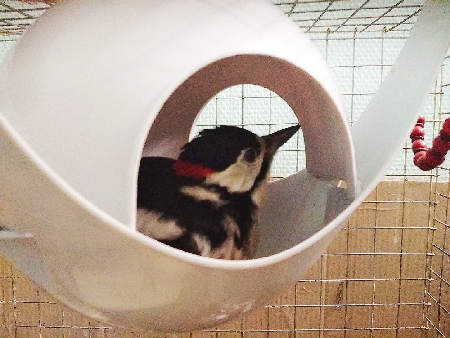 Он уже "взрослый самостоятельный птиц" и занимается своими дятловскими делами.