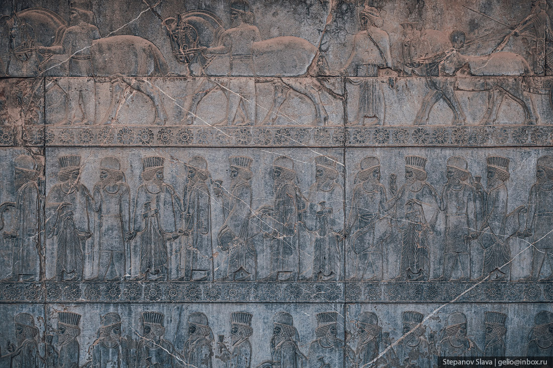 Барельеф на внешней стороне лестницы — шествие царской гвардии.